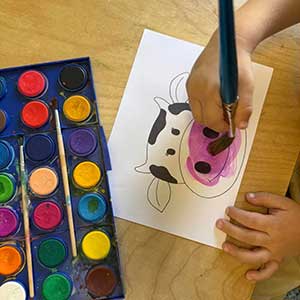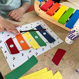 Το «αστεράκι» βάφεται κόκκινο και μπλε, χρησιμοποιεί χαρτί κανσόν και βελουτέ. Μαθαίνει πως κίτρινο και μπλε φτιάχνει πράσινο και πως ο Ντα Βίντσι ήταν σπουδαίος ζωγράφος. Η όραση, η κίνηση, η αφή και τα ακούσματα συνεργάζονται και οξύνουν τη δημιουργία και την καλαισθησία.